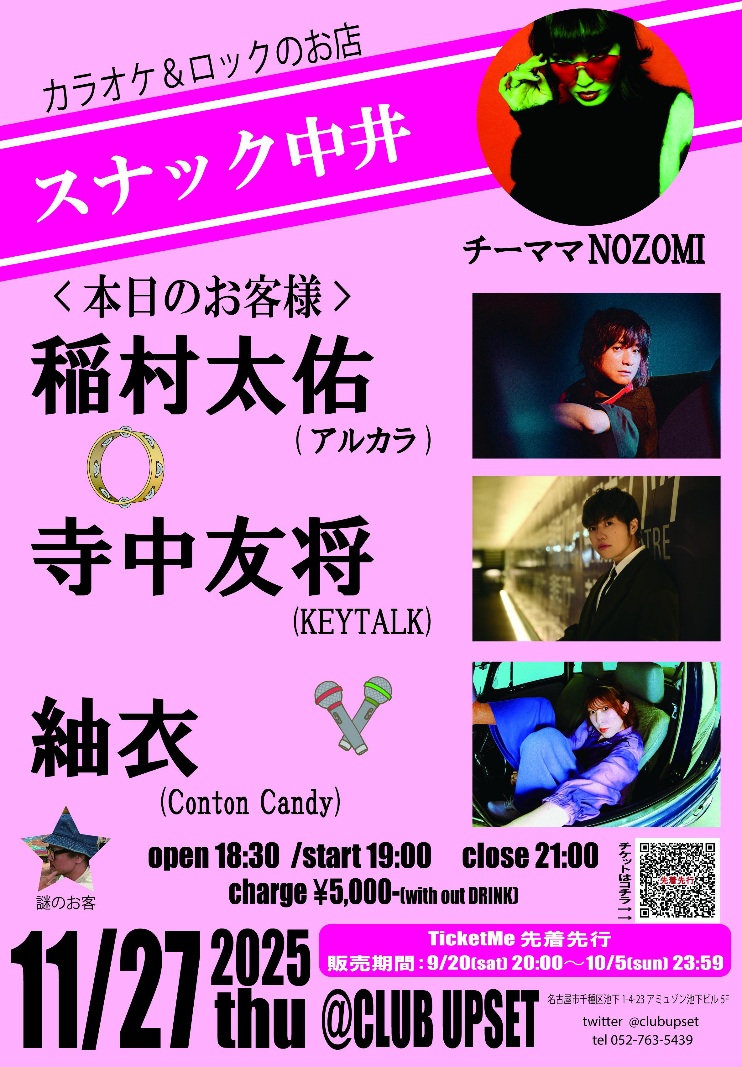 <本日のお客さん> 稲村太佑(アルカラ) /寺中友将(KEYTALK)紬衣(Conton Candy) <チーママ> NOZOMI -